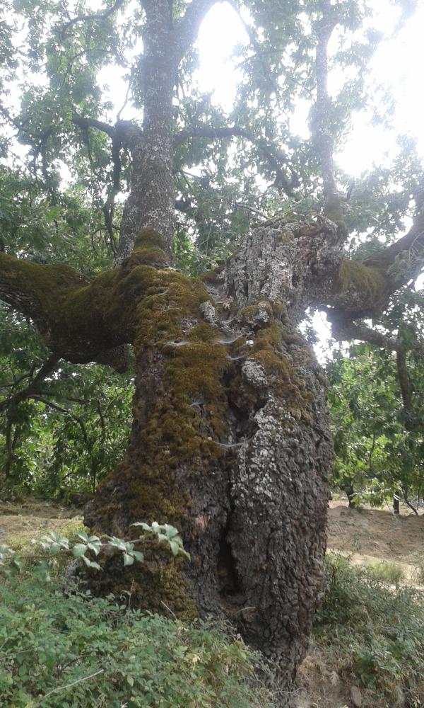 Podemos pasear por una dehesa de roble melojo/rebollo (Quercus pyrenaica), con pies centenarios de enorme porte favorecido por las antiguas podas para el aprovechamiento de bellota.